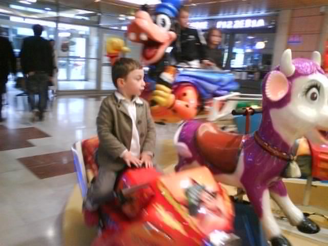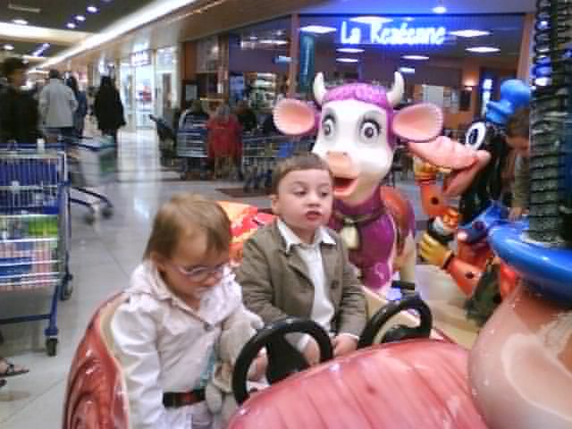 Et voici Nils et Aïko sur le manège d’Atout Sud. Nils voulait monter sur un manège mais une fois dessus, il ne voulait pas y rester! Nils est un peu pétouchard! Mais avec Aïko, le voilà rassuré!
